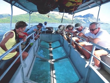 The Boat Ride with Glass Bottom for Seeing the Under Water. (Charges around Rs. 200 per Person ) in Coral Island.